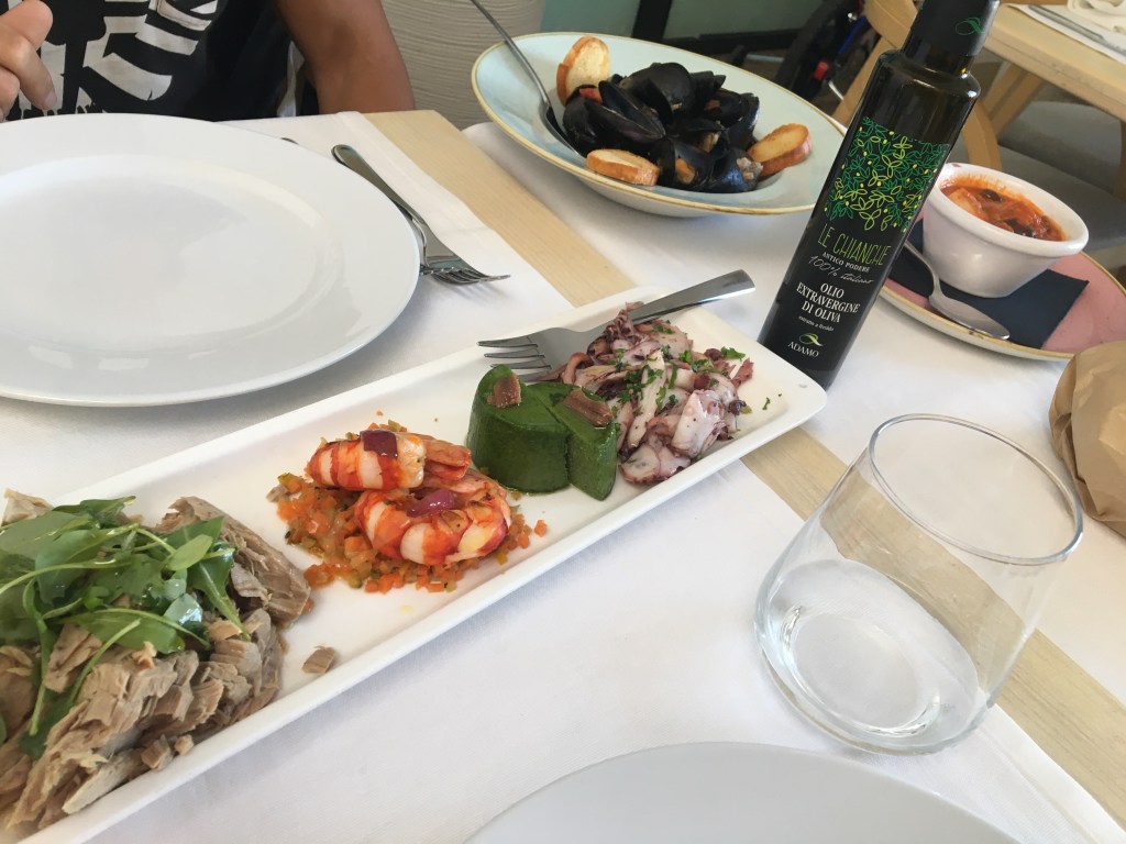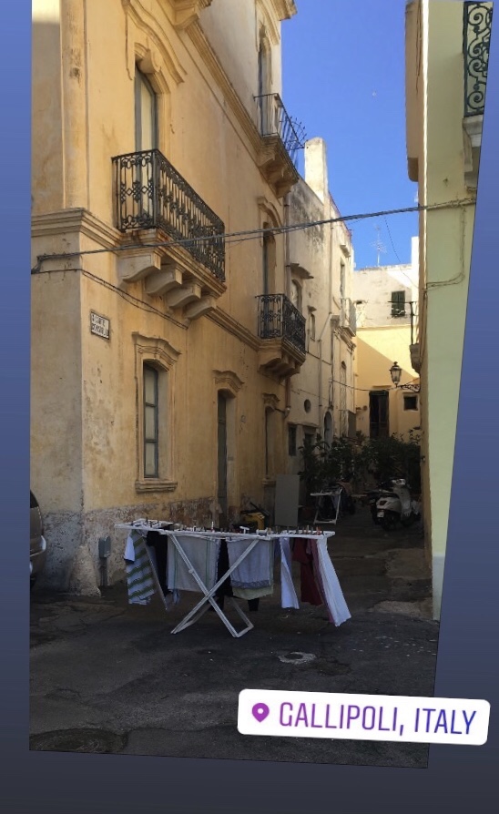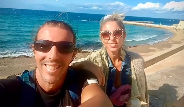 Quindi lasciata Punta Pizzo si va dritti verso Marina di Pescoluse, dove arriviamo il 26 Ottobre, in una giornata di pieno sole e 23 gradi. In spiaggia infatti c’e’ davvero tanta gente per essere quasi Novembre. Il mare non delude assolutamente le nostre aspettative, anche se non notiamo molta differenza con quello di Punta Prosciutto, entrambi sono 2 Paradisi. Anche se l’acqua e’ comunque freschina, non possiamo non fare il bagno… e ci ritroviamo anche in compagnia di tanti piccoli pesciolini che fanno sentire la loro presenza mordicchiandomi piedi e gambe ( e fanno pure male coi loro dentini affilati). Prima di pranzo un breve allenamento sul pontile di legno che porta alla spiaggia e poi direzione Leuca.